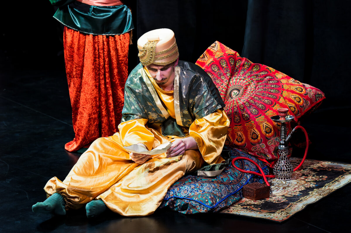 Il fait traduire le mot et découvre une possibilité de se lancer avec son brave Vizir dans une aventure hors normes: se transformer en l’animal qu’il veut avec le mot magique “MUTABOR”. Mais gare à celui qui rit une fois transformé car il oubliera le mot magique et ne pourra plus retrouver son état initial…